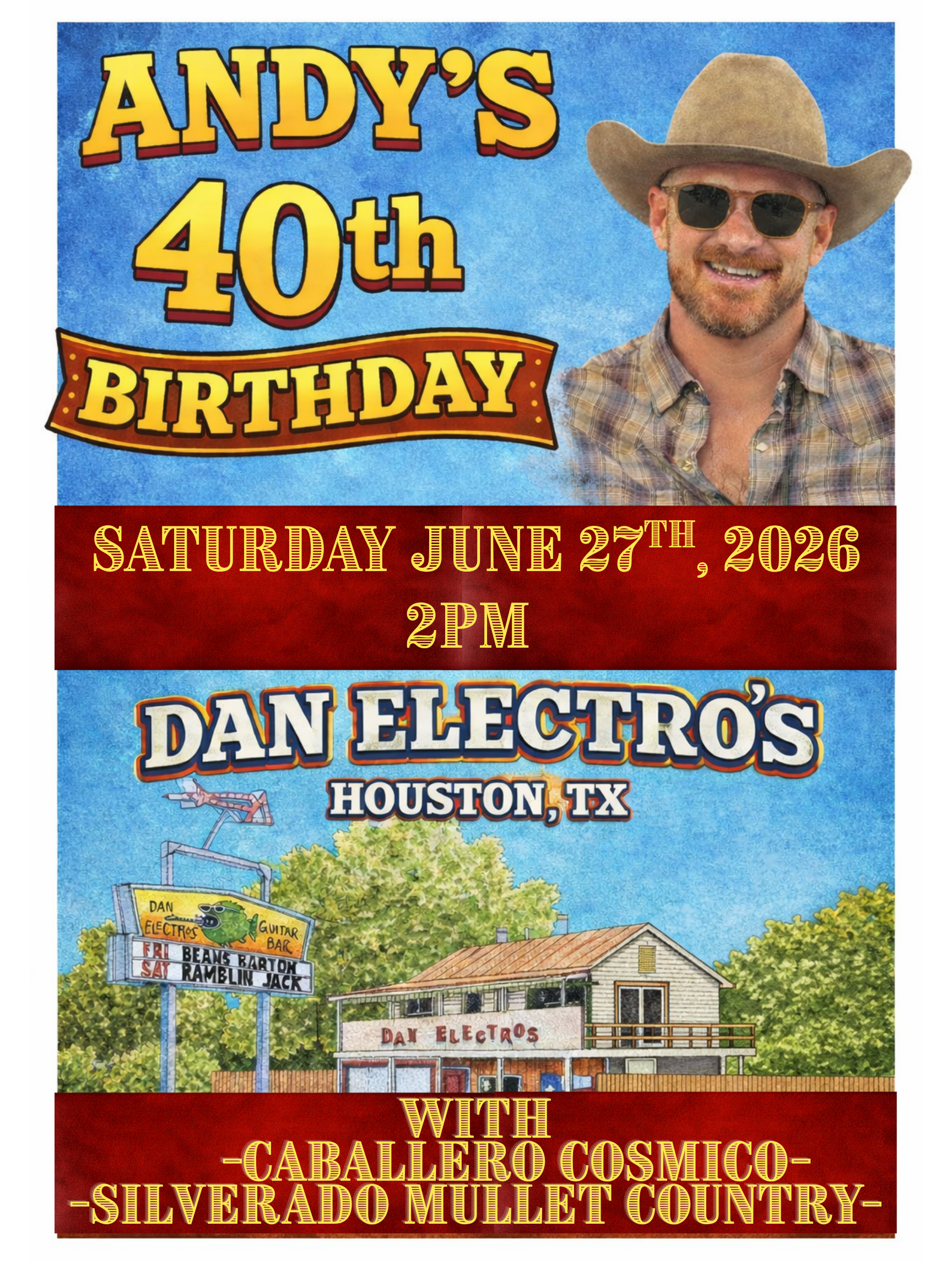 Join us at Dan's to cheers Andy into a new decade & dance to 80s & 90s music all day long. The bar will still be open to the public, so feel free to come & go and bring your crew. If you want to throw on your 80s or 90s country best, we're totally here for it. See you there!