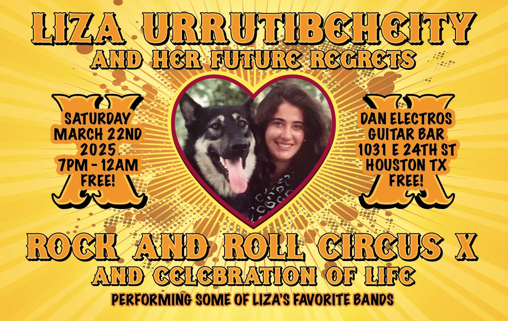 As most of you know, our dear ring-mistress, Liza U, has left the tent. So this year, instead of honoring musicians that passed the previous year, we will be honoring Liza Urrutibeheity by playing songs from some of her favorite bands. Liza says....COME FOR THE FUN, STAY FOR THE CHAOS!
