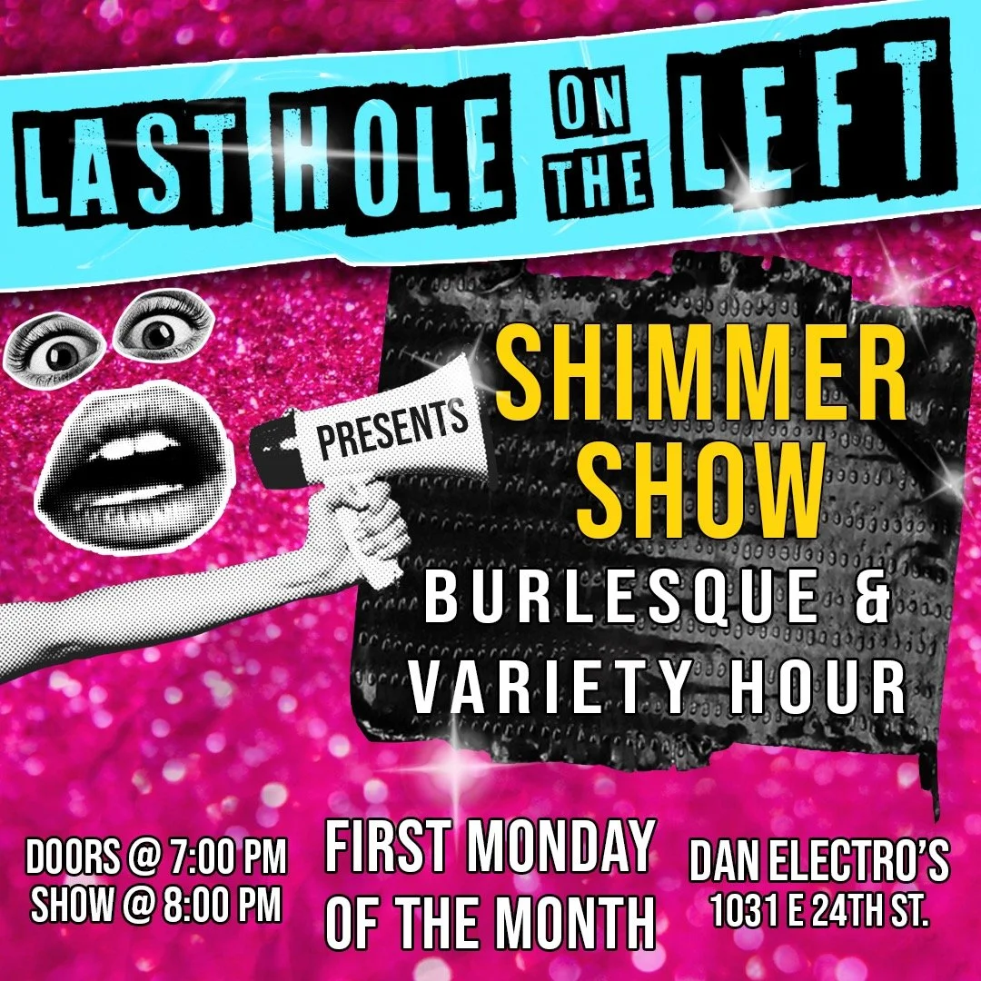 It's The Shimmer Show! Where you'll see glitz, glam, shimmer, shammer- who am I kidding it's a burlesque and variety show starring all your favorite weirdos from Houston, Texas and beyond!! Come see us every first Monday of the month at the infamous Dan Electro's!!!